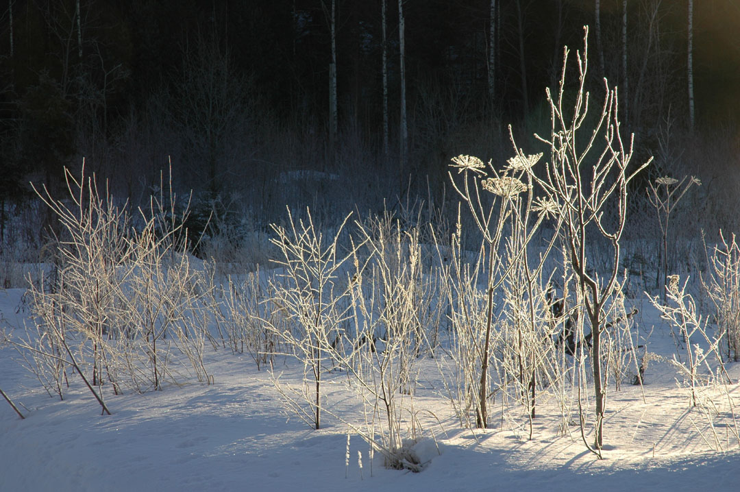 Tuo on otettu muutama päivä sitten (oisko ollut torstaina?). Näillä näkymin taisi olla viimeinen noin napakka (-15) pakkasaamu? Monta kertaa tuli ohi ajettua ja aateltua, että huomenna jos on riittävästi pakkasta ja aurinko paistaa, niin sitten pysähdyn ottamaan muutaman kuvan. No onneksi tuli sitten otettua pari ruutua, nyt taitaa olla jo myöhäistä.