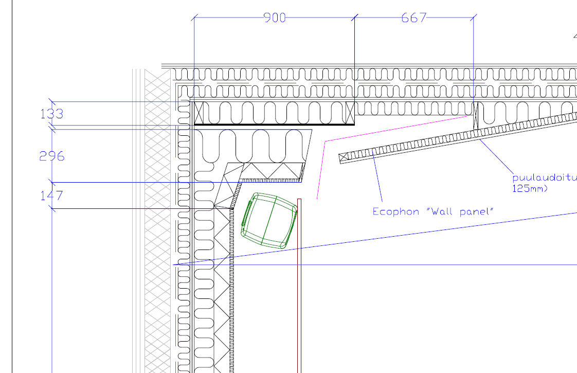 Valkokangasseinä ja kaiuttimien sijoitus.