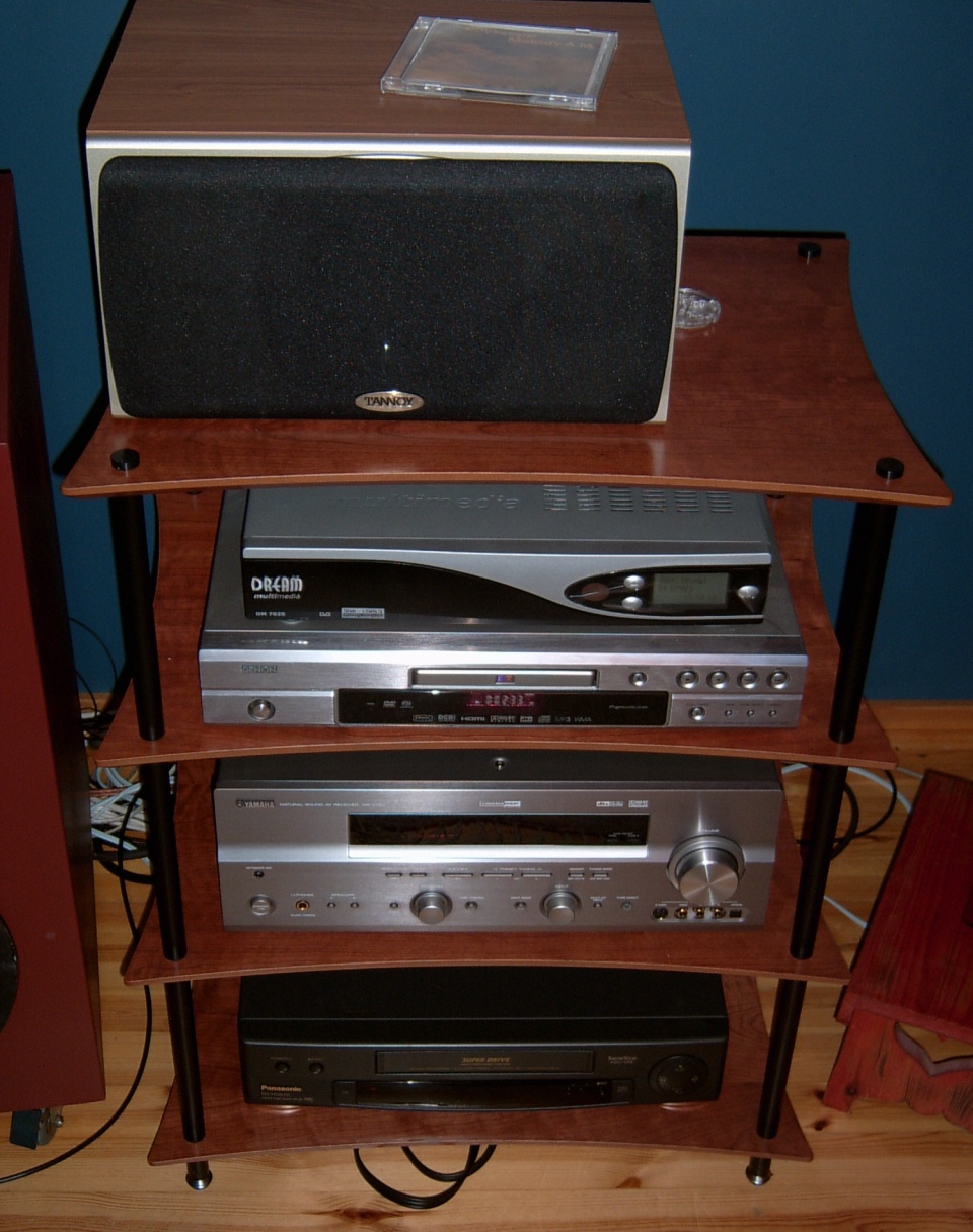 Laitehylly - Quadraspire Tannoy S6C DM 7025ST Denon DVD-1920 Yamaha RX-V757 Panasonic videot