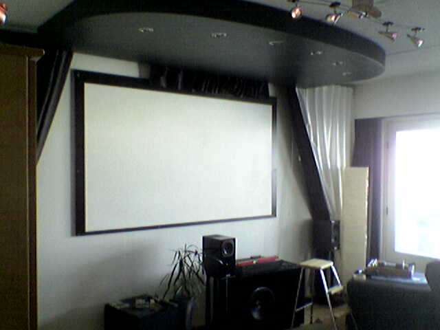 Uusi screeni on paikallaan, verhot vedettynä pois tieltä asennuksen ajaksi.
