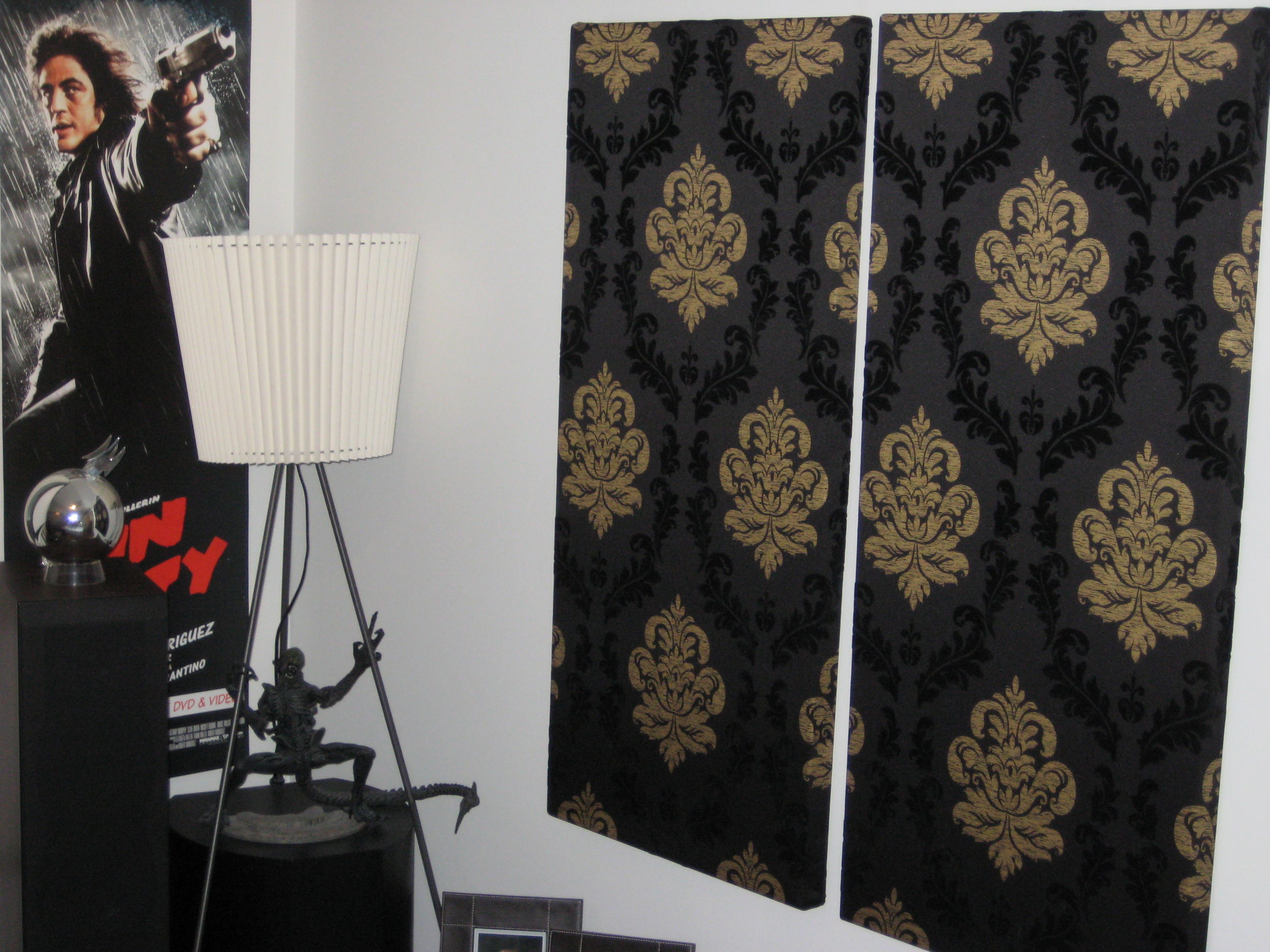 Vihdoinkin sain väsättyä jonkunlaiset taulut seinille ja näin pienen testailujen jälkeen toimii! (koot ovat 450x1200 ja kaksin kappalein)