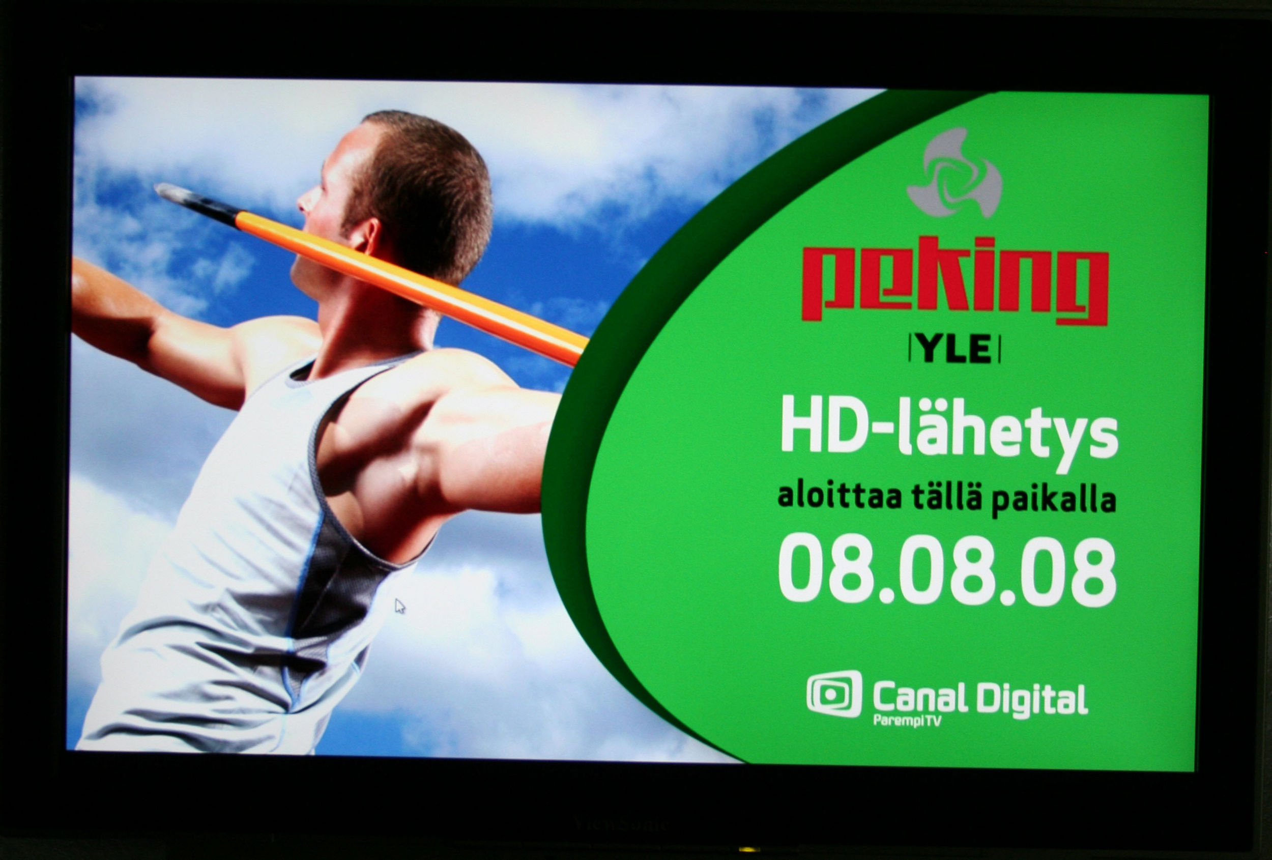 Yle lähettää 08.08.2008 alkaen Pekingin kisoja myös teräväpiirtona. Tämä kuva on satelliittipuolelta. Bitrate pyörii siinä 20MB/s tuntumassa.