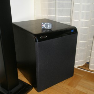 Oikea etukaiutin (Genelec 8030A) Appiukkon valmistamat kaiutinjalat.