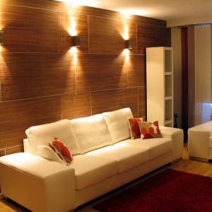 Suunnitelmat hiukan muutuivat ja seinän telaamisen sijasta päätinkin levyttää seinän tuollaisella pähkinäviilutetulla mdf-levyllä, joten hieman...