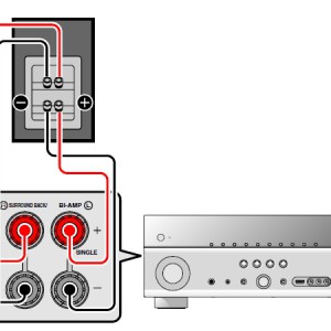 Kaiuttimessa on kahdet parit liittimiä. Kuva ei ota kantaa siihen kumpaan liitinpariin johto front-kanavasta menee. Se on juuri ongelma....